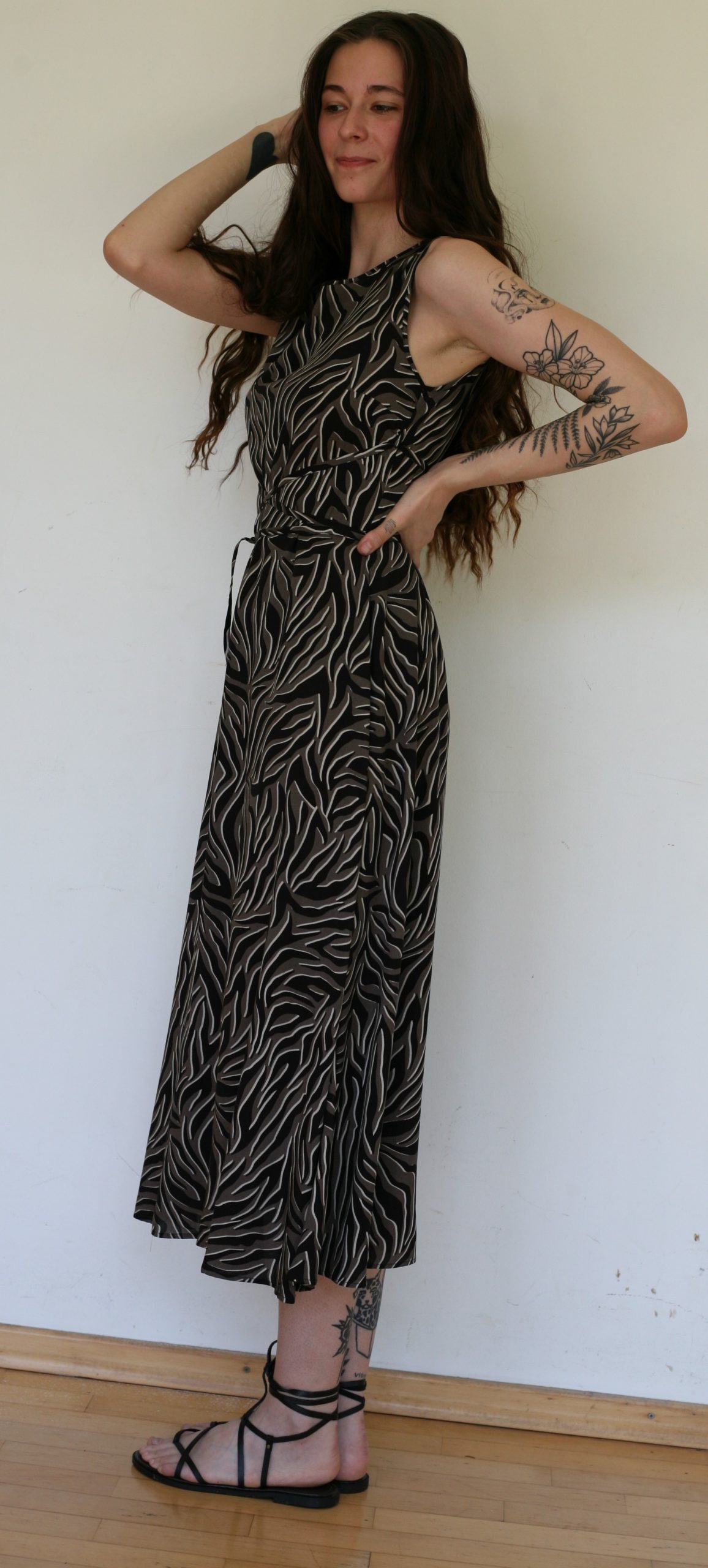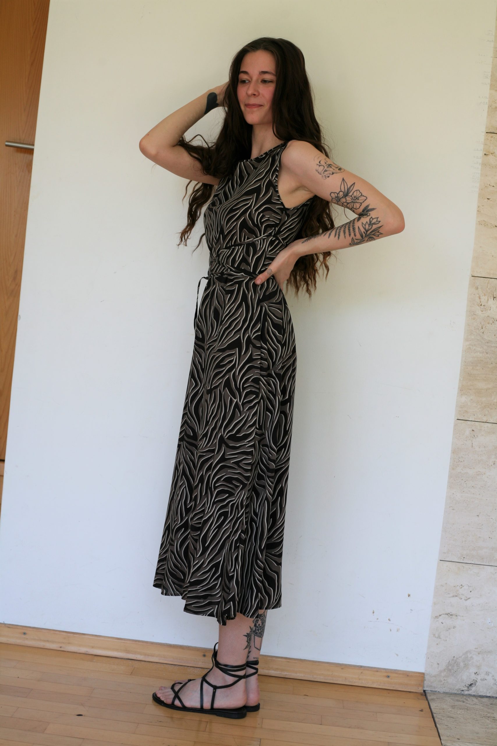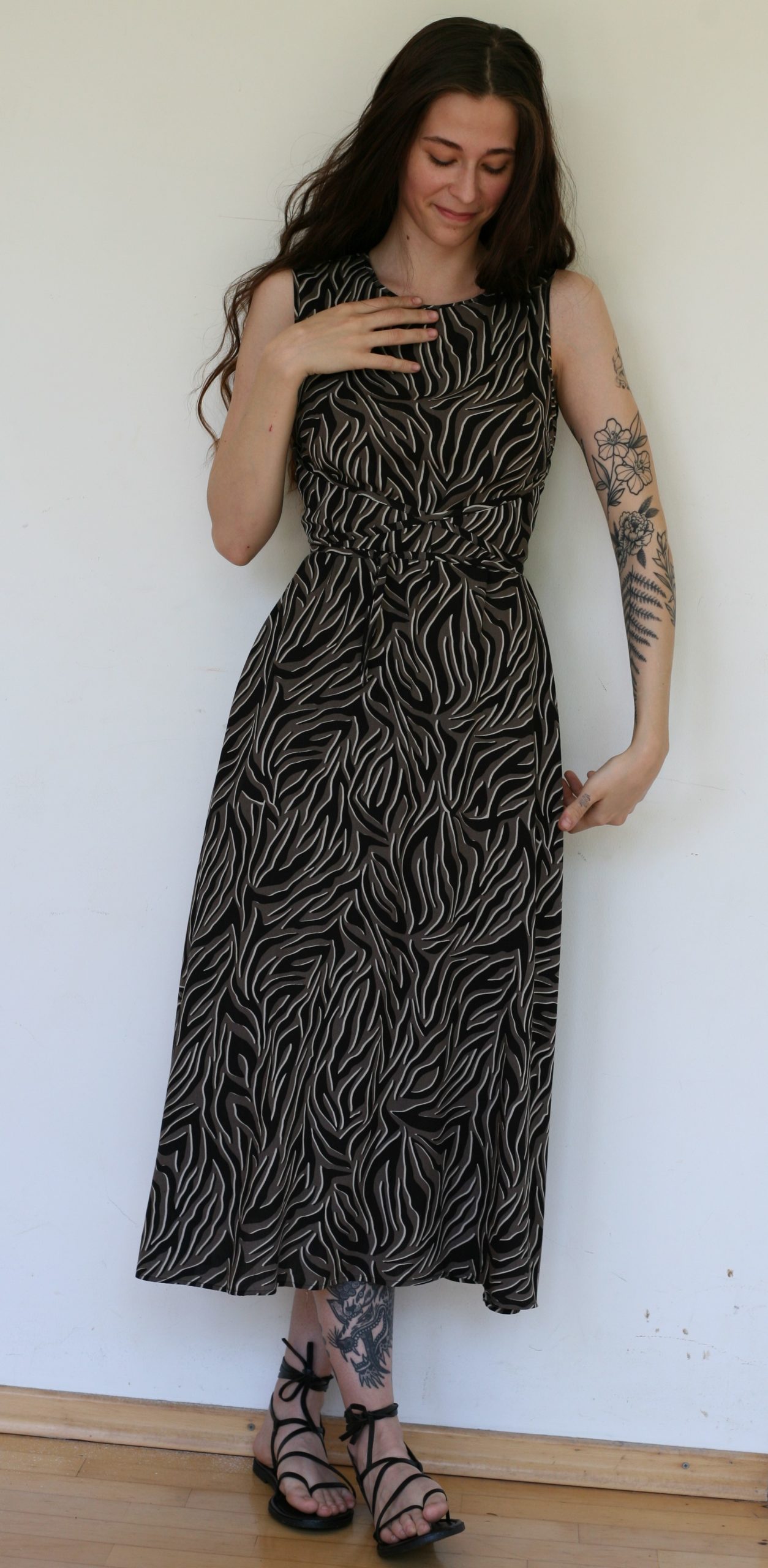 Haljina Sofi izrađena je od viskoze, u gornjem dijelu krojena je uz tijelo, a u donjem se širi u blagom glokl kroju. Oko struka veže se vrpca. Duž leđa je zatvarač ispod kojega je ušita zaštitna tkanina.